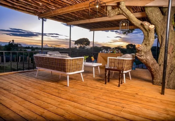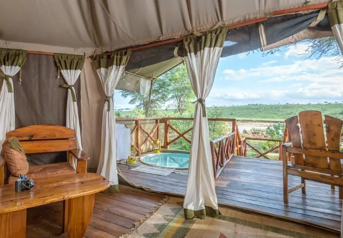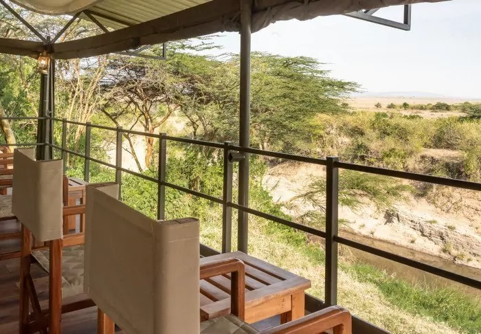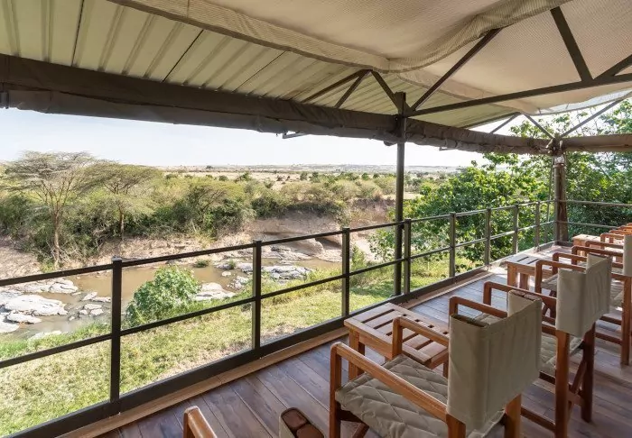 Imagine lying on a sun lounger on your own large wooden deck outside your tent in Masai Mara. You can hear the hippos fighting down in the Mara River – the river that is at the centre of the great migration every year and which this camp is located right next to.