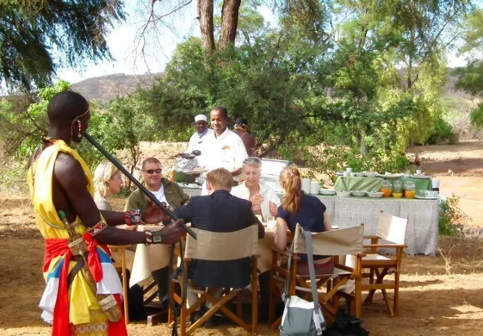 The camp has a lovely pool, so you can cool off in this often hot, dry part of Kenya, and from the restaurant you have uninterrupted views of the stunning countryside around you.