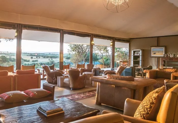 The tents are the same as at River Camp, the area around the campfire is just as charming with its coloured cushions and superb view of the Masai Mara, and the bar and restaurant have the same feeling of airiness, light and space about them.