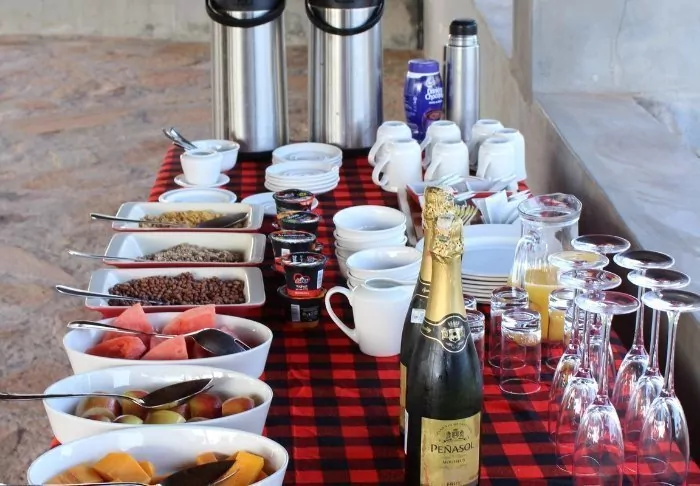 You’re sitting in the mess tent. The large wooden platform outside the dining area is raised above lawn, and the views are phenomenal. The food and coffee are excellent, and it is this combination that makes you question whether you need to move at all.