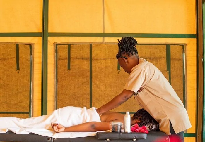 The swimming pool also offers a great view, and if your body feels battered after hours in the safari vehicle, a visit to the small spa for a soothing massage will do wonders.