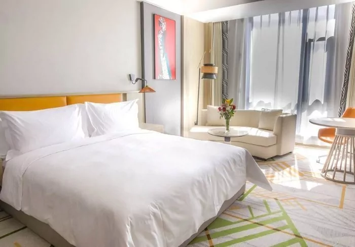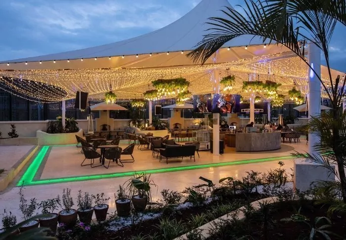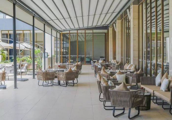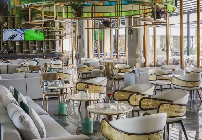 The hotel has almost been designed as a small complex, in the middle of which is a garden with a pool at one end. Here, you will find sun loungers, and next to them a charming bar. The hotel also has three restaurants, a lounge area and a gym – and best of all, it’s only a good 15-minute drive to the airport, which makes it the perfect place to spend the night on the journey out or home.