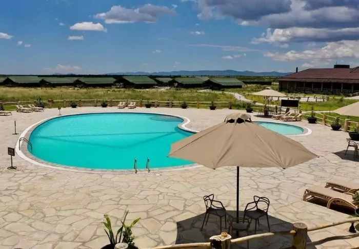 If you need to cool off after the day’s safari, you can jump in the pool for a swim.