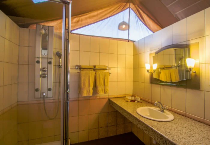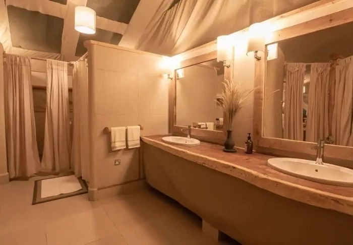 The tents are incredibly spacious. Despite having canvas walls, each has a proper door and a built-in bathroom, ensuring you don’t compromise the feeling of being close to nature.