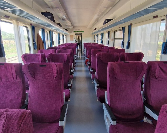 The trains we use in Kenya are modern, with comfortable seats, toilets, and the option to purchase drinks and snacks along the way.