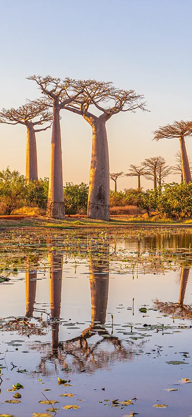 Awaiting you are lemurs of every kind, baobab trees rising like sculptures in the glowing evening light, and elusive fossa, chameleons, and mouse lemurs all thrive in one of the world’s most endangered yet fiercely protected forests.