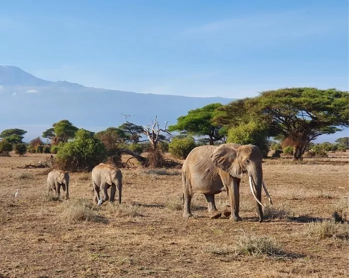 The day is spent on safari in Amboseli. Due to the dry climate and the open plains, you stand a very good chance of seeing wild animals here, and the view is amazing. And you might even be able to get a good shot of the famous motif of elephants crossing the savannah with Kilimanjaro and the iconic acacia trees in the background – a motif that just screams “Africa”!