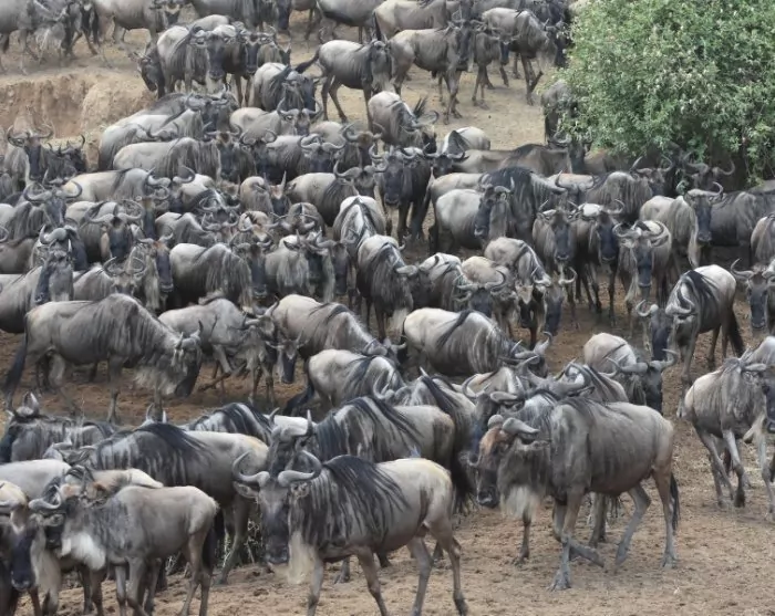 Over the next few days, you will get right up close to a host of animals, which you experience from the protection of the Land Cruiser. From July to October, you can experience the 1,200 km long migration of more than a million wildebeest, a few hundred thousand zebras plus a huge number of Thompson gazelles on the Kenyan side of the Great Migration. It is during this migration that many gazelles fall victim to the huge Nile crocodiles when crossing the Mara River.