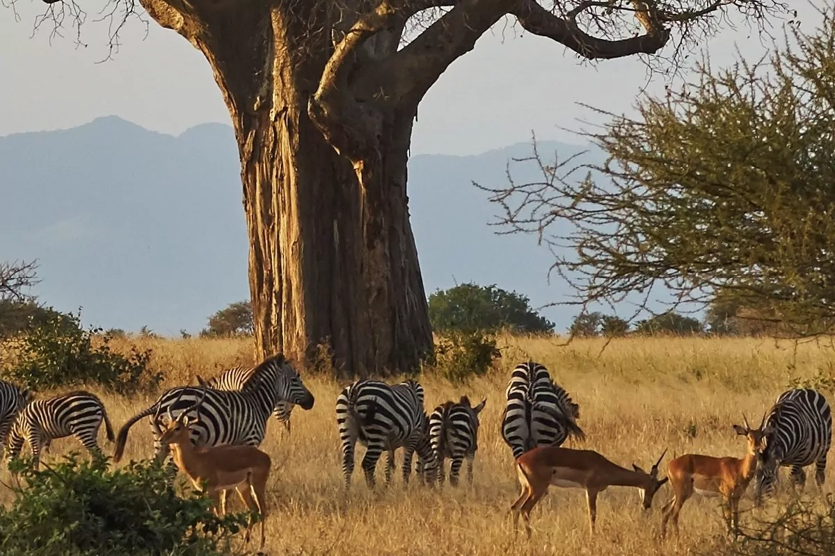 he landscape and vegetation is incredibly diverse as the hilly landscape embraces nine different growth zones. The savannah is filled with majestic baobab trees and acacias, which are almost on scale with the vast amount of animals to be found.