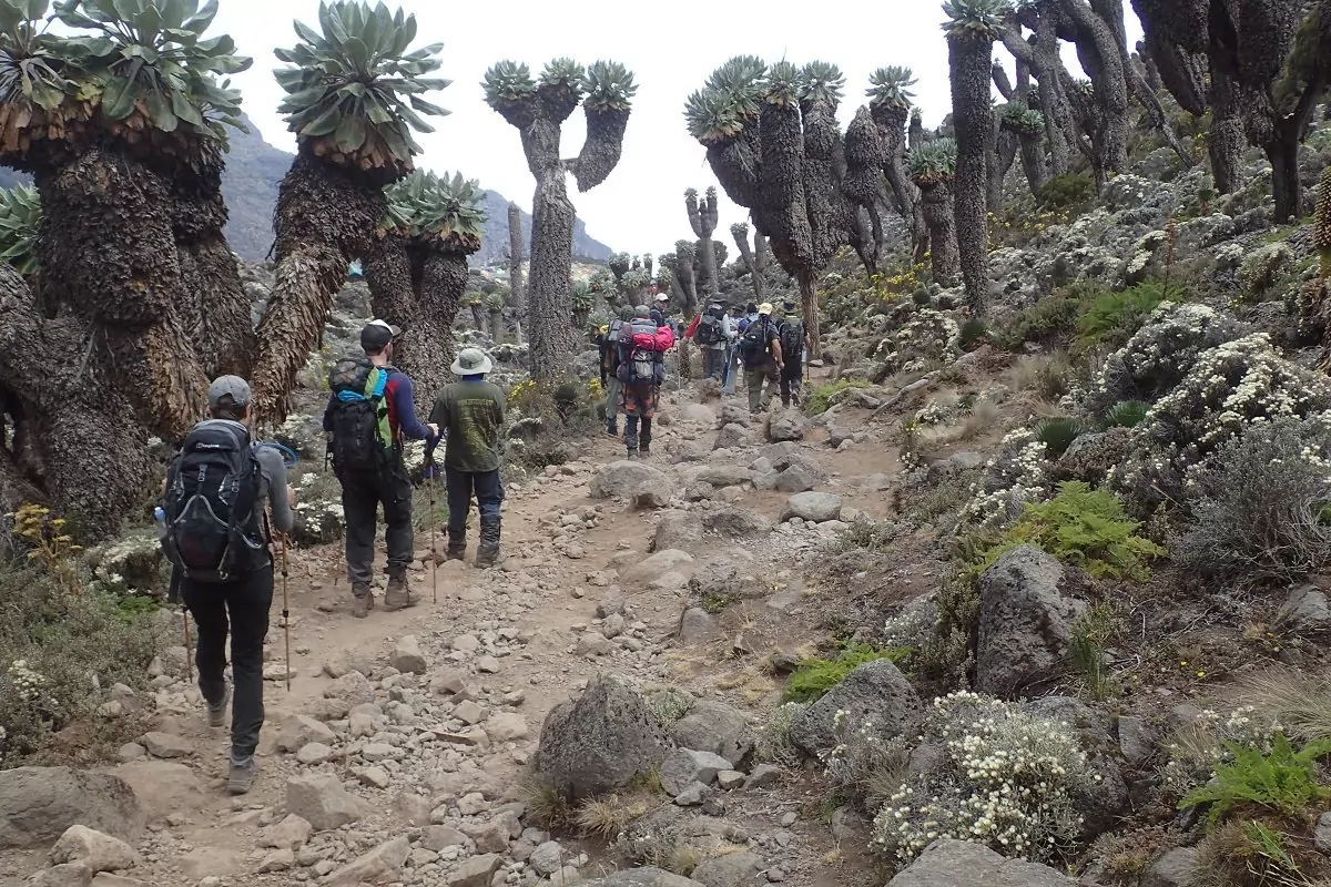 Both the terrain and the altitude will make today’s stage physically and mentally challenging, so take your time and listen to your body. Even though you will finish the day ‘just’ 110 metres higher up than you started, the route involves climbing 790 metres higher than that at Lava Tower before the descent to Barranco Camp. A lot of people experience the first signs of altitude sickness at these heights, so please watch out for the slightest sign and inform your guide without delay.