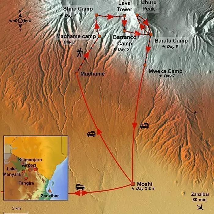 The goal of this tour is the peak of Kilimanjaro on the renowned Machame route. The reward and relaxation await on the white sandy beaches on the exotic island of Zanzibar.