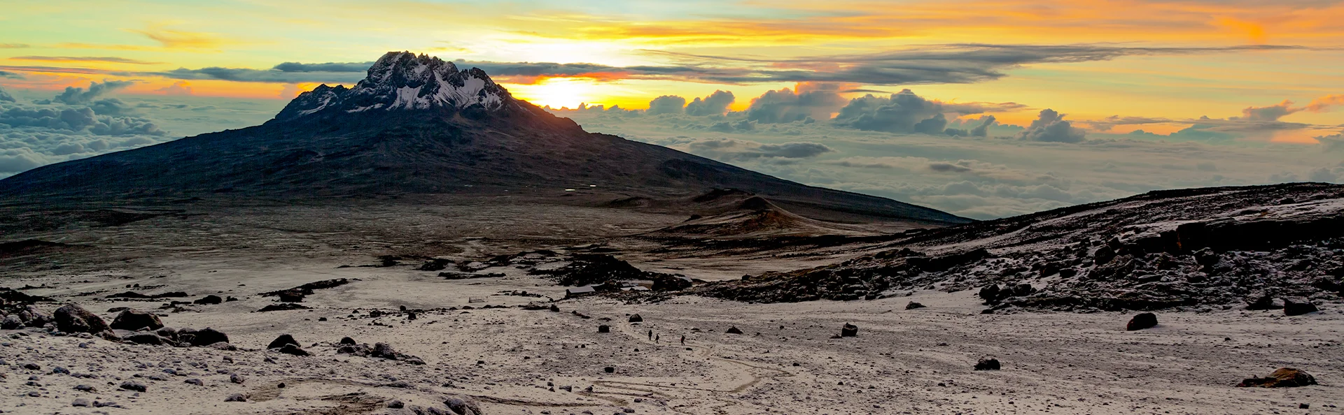 Barafu Camp is located at an exposed site on a mountain ridge. The ground is stony and the winds often blow strongly here. Make sure to familiarise yourself with the terrain in and around the camp before darkness falls so you are well prepared when the ascent to the summit commences shortly after midnight.