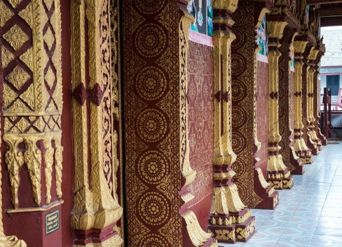 At 8.30–9.00 am, you meet the guide at the starting point of the tour at Hotel Sofitel. Built as the former governor’s residence in 1900, Hotel Sofitel, with its fortresses and lookout towers, is a prime example of a colonial mansion. At the nearby visitor centre, you can experience the story of the bombing of Laos between 1964 and 1973, and at the monument of President Souphanouvong, you hear the story of the first president of Communist-controlled Laos. Outside the city walls, you will then visit Wat Manorom, which is the temple of Luang Prabang with the largest circle of associated monks. The temple is believed to have been built either in 1372 or in 1492, and the city’s oldest and largest Buddha statue, which stands 6 metres high and is made of bronze, is housed here.