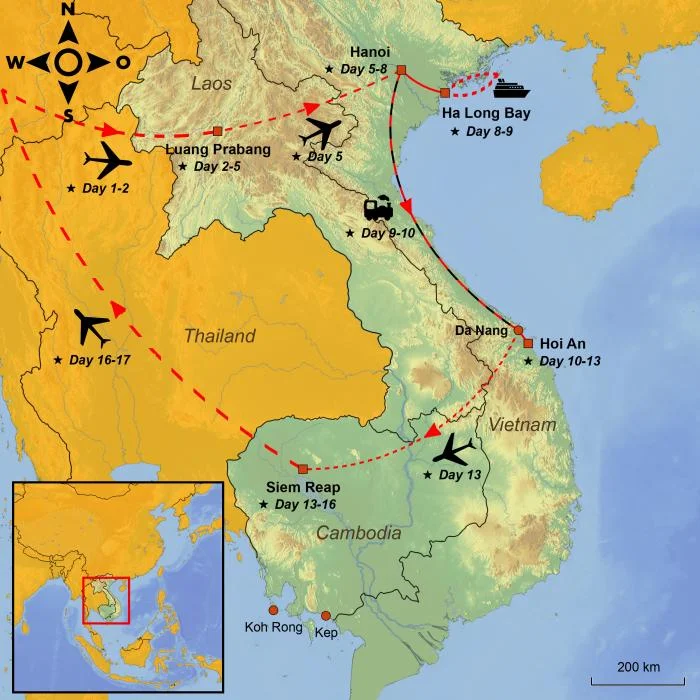 On this tour, you’ll discover three of Indochina’s most enchanting countries – Laos, Vietnam, and Cambodia – each offering its own unique history, culture, and natural beauty.