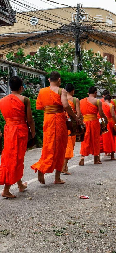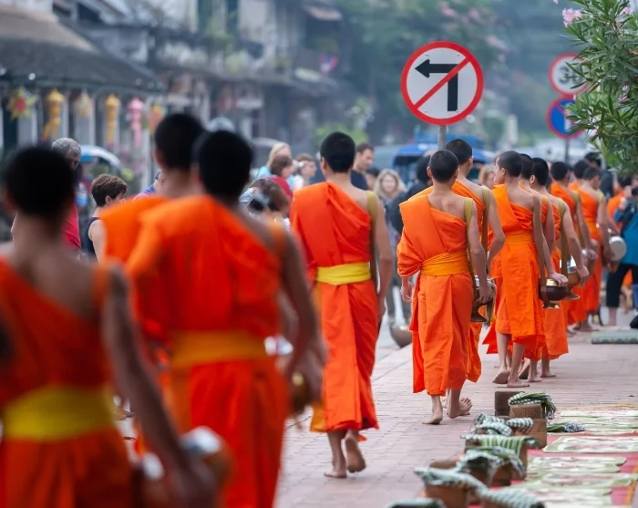 Every morning, in the early hours, a truly unique ritual unfolds in Luang Prabang. Hundreds of monks move quietly through the city’s streets, gathering alms. Each family sends a member outside with food or drinks, which are then distributed into the monks’ bowls. It’s hard not to be moved by the respectful silence and immense dignity that surrounds this daily act.