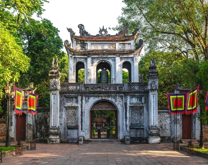 Afterwards, you’ll be driven to the Temple of Literature, a tranquil complex built in the 12th century by students of the Chinese philosopher Confucius. With nearly a millennium of history, the temple stands as a rare and beautifully preserved example of traditional Vietnamese architecture, complete with colonnades, ponds, and verdant courtyards – a spot where young students still come to pray for luck in their exams.