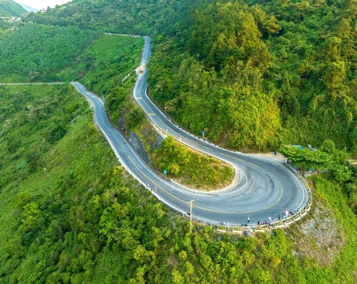The route at times follows the coastline and winds its way up through the Truong Son Mountains, where you’ll cross the spectacular Hai Van Pass, also known as the “Pass of Clouds”. From here, the views are simply breathtaking, with lush green mountains on one side and the endless blue horizon of the South China Sea on the other.