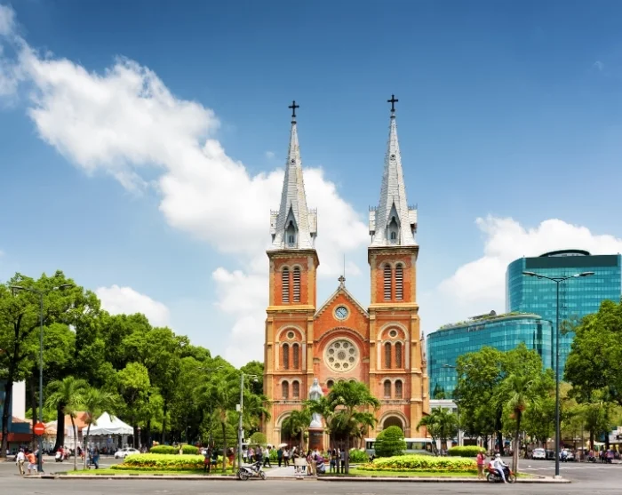 Directly opposite the Old Post Office stands the iconic Notre Dame Cathedral, built between 1863 and 1880. This cathedral is an impressive remnant of the French colonial era, instantly recognisable by its distinct red bricks and soaring spires.