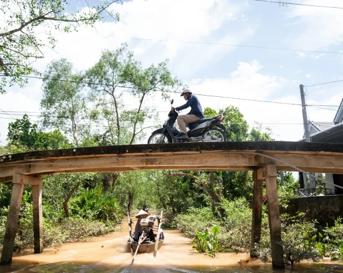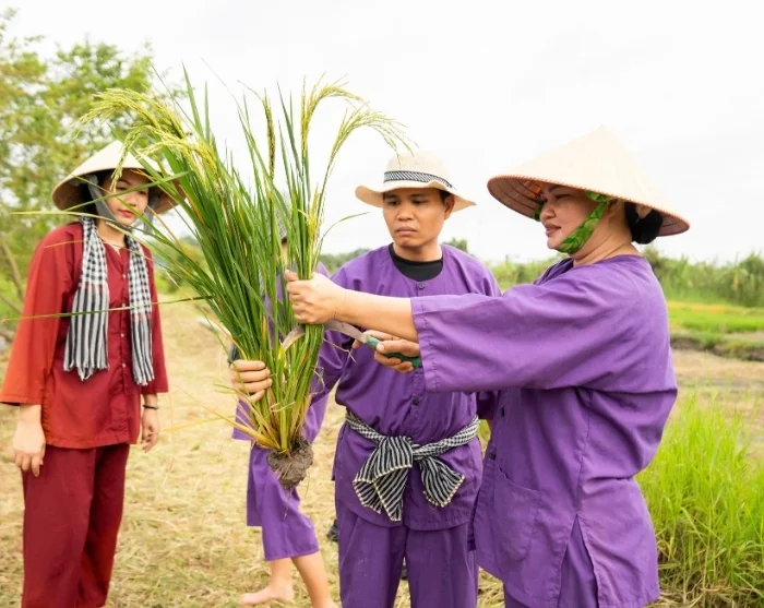 The next stop is our social sustainability project in Vinh Long, launched by our local partner. A gentle stroll through the village awaits, where your guide will share insights into the initiative. You’ll also get the chance to experience traditional rural life for yourself by joining local farmers in the rice fields—either planting tender seedlings or helping with the harvest, depending on the season. It’s an eye-opening, hands-on encounter that offers a unique glimpse into daily life in Vietnam’s countryside and the efforts behind sustainable farming. By joining the tour, you’re also making a difference for families in Vinh Long, as a percentage of your tour price goes directly to this project, which you can learn more about here.