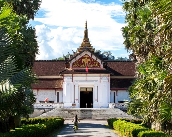 Next, you’ll continue to the former Royal Palace, built in 1904 during the colonial era for King Sisavang Vong. Today, the palace houses the National Museum, where you can wander through the well-preserved royal chambers and admire a collection of rare religious and cultural artefacts. It’s easy to imagine how life once unfolded amid these polished floors.