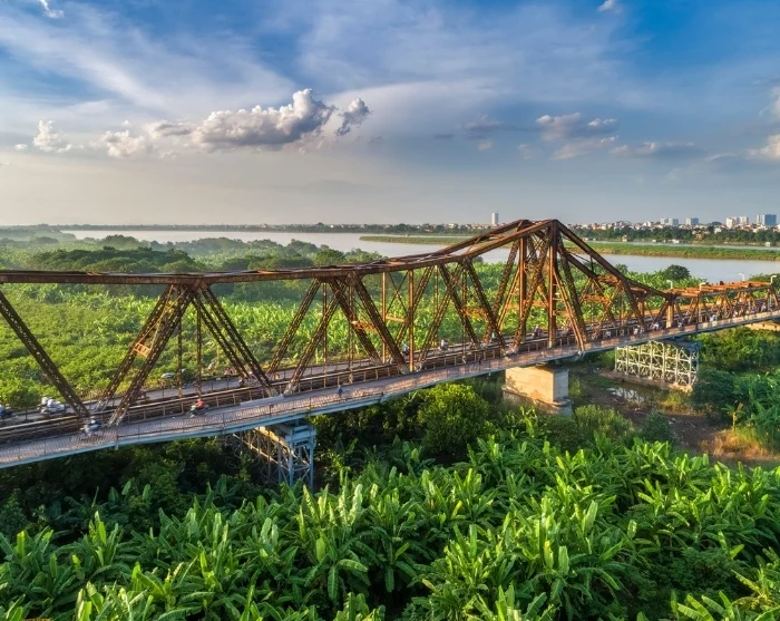 After your exciting cyclo ride, you’ll visit the historic Long Bien Bridge – an iconic landmark dating back to the French colonial era, built at the start of the 20th century. This distinctive iron bridge spans the Red River and, though heavily damaged during the Vietnam War, stands today as a testament to Hanoi’s resilience. Reserved for trains, cyclists, and pedestrians, the bridge offers a memorable atmosphere. Here, you might encounter locals cycling to work or selling fresh fruit beside the tracks, while enjoying views of small, verdant river islands with cultivated fields right in the heart of the city – a favourite scene for both photographers and travellers looking to capture the very essence of Hanoi.