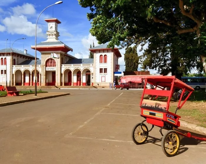 Like all other cities in Madagascar where the French were present, there is a long, wide boulevard in the city centre – and it is at the end of the boulevard that you will find the railway station, which is no longer in use.
