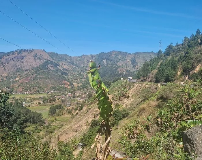 After a couple of hours of driving through a hilly plateau landscape with lots of rice fields, the scenery changes. The hills become higher, and the forests denser. Here and there, you can glimpse the river at the bottom of the valleys.