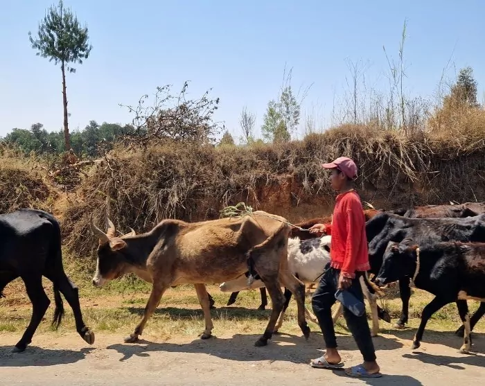 From the Anja Reserve, you continue in a more south-westerly direction, and the landscape changes again. You drive through the mountains and up to the town of Ihosy – about a two-hour trip. You will now find yourself on a highland plateau, the Horombe Plateau, which is home to the Bara tribe.