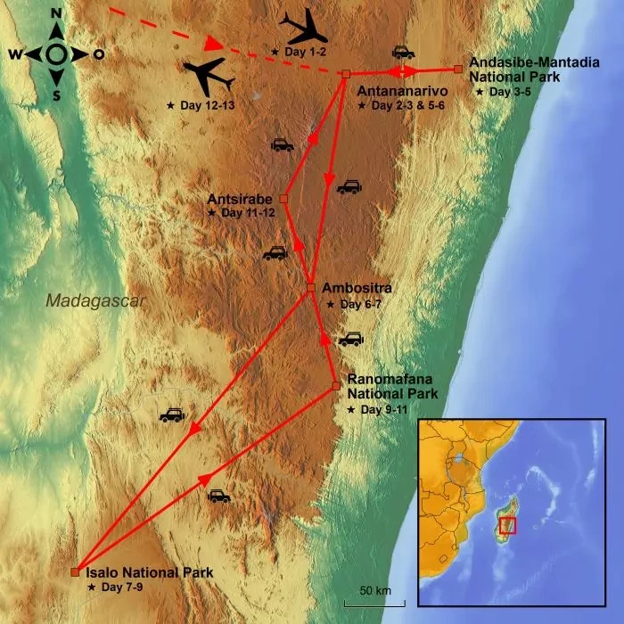 Today you depart from your chosen airport with connecting flight(s) along the way. The tour is to stunning Madagascar, the big red island in the Indian Ocean.