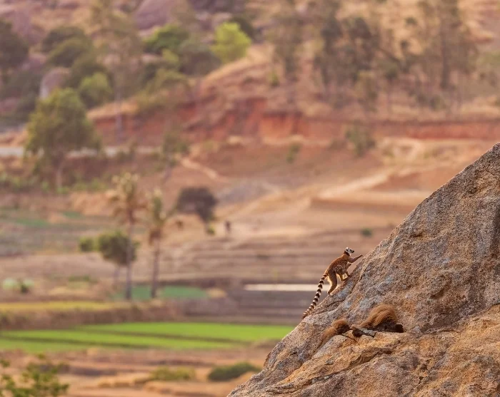 Your first “checkpoint” today is the town of Fianarantsoa, located just over four hours’ drive south of Ambositra. After another hour and a half on the road, you’ll arrive in Ambalavao, where your first attraction of the day awaits. Here, you’ll visit the Anja Reserve, a nature reserve that’s a fantastic spot to see ring-tailed lemurs.