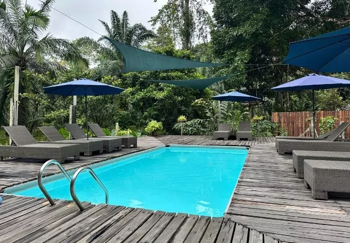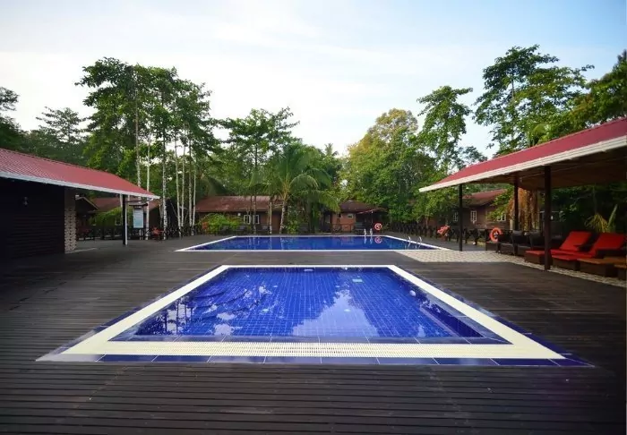 At the riverbank, you’ll find the lodge’s large viewing platform, offering clear views over the open expanses along the Kinabatangan River, making it the perfect spot to observe the rainforest’s wildlife and birdlife. On the lodge’s spacious wooden deck, a delightful pool area awaits, offering plenty of room for a refreshing dip.