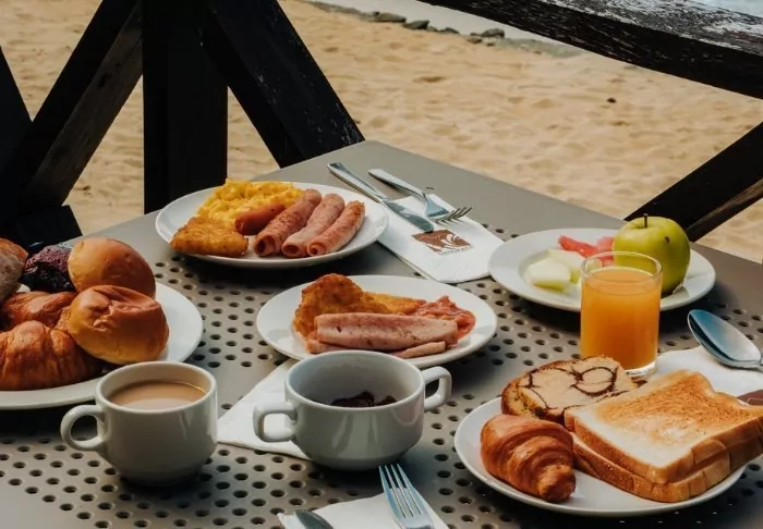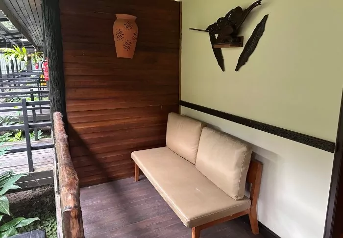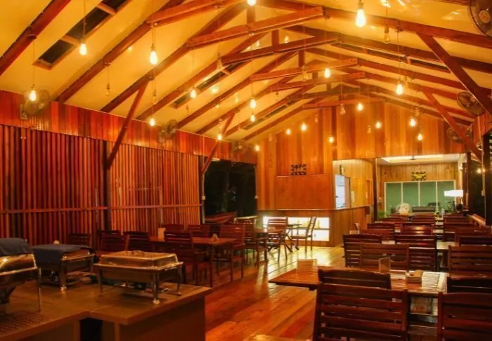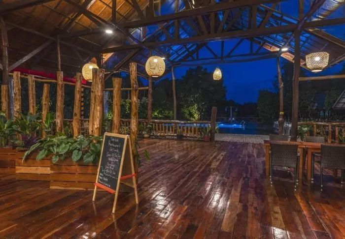 The heart of the lodge is the open-air dining and lounge terrace overlooking the river, where you can savour every meal beneath the open sky. Meals are served buffet-style, offering a variety of local dishes prepared with fresh, locally sourced ingredients. Throughout the day, complimentary coffee, tea, and drinking water are available in the communal area for you to help yourself.