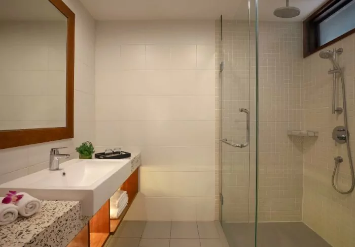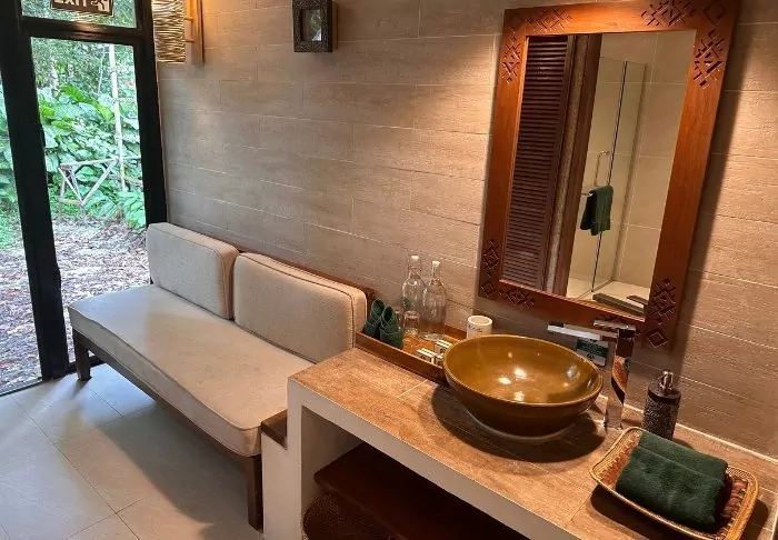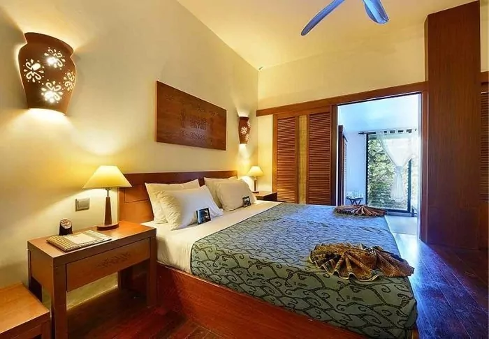 Accommodation at Tunamaya Beach & Spa Resort consists of tastefully decorated villas, offering you a tropical view of the lush garden or the green tapestry of the rainforest. Each villa is equipped with modern amenities to ensure a comfortable stay, including air conditioning, cosy beds, and a private balcony where you can enjoy the breathtaking surroundings. The adjoining bathroom features a shower, hairdryer, as well as bathrobe and slippers.