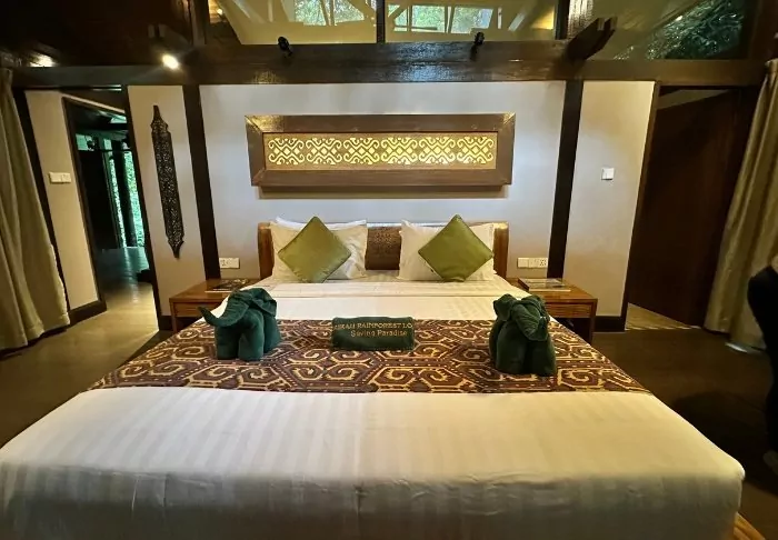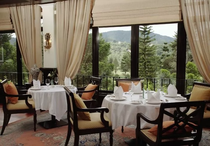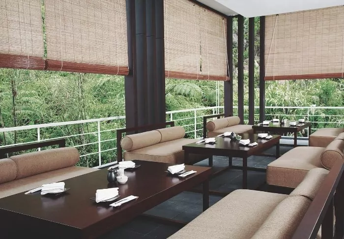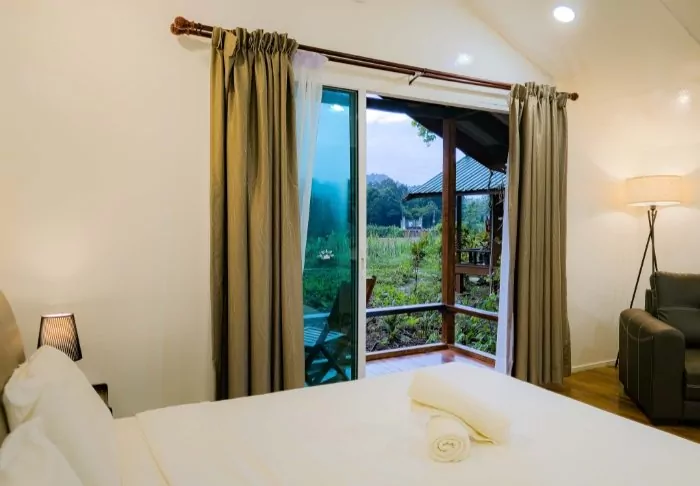 The rooms are large (min. 480 sq ft) and furnished with wooden floors and mahogany furniture, which add a natural warmth, while fresh orchids provide a little colour to the white, black, and grey shades. The large windows of the rooms invite nature inside and open up to beautiful views of the green surroundings. Inside, you will find everything you need to feel at home, right from soft beds to a comfortable seating area with a sofa, table, and TV. Other amenities include Wi-Fi, tea and coffee making facilities, complimentary bottled water, and a safety box, while the bathrooms have a shower, hairdryer, and essential toiletries.