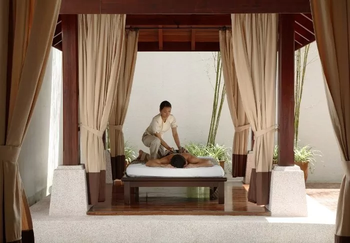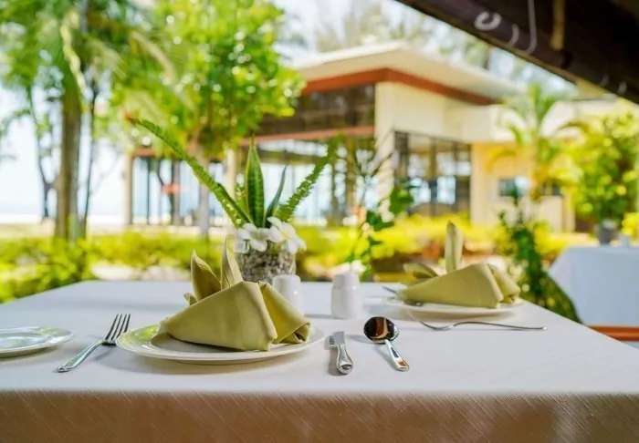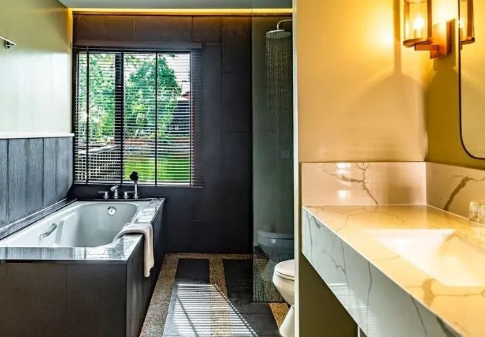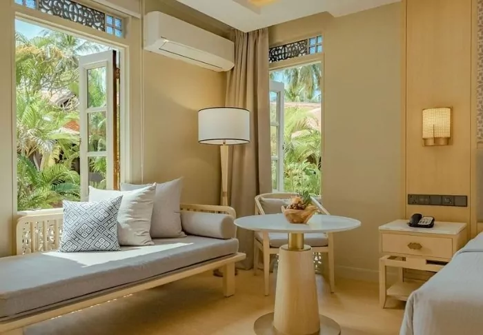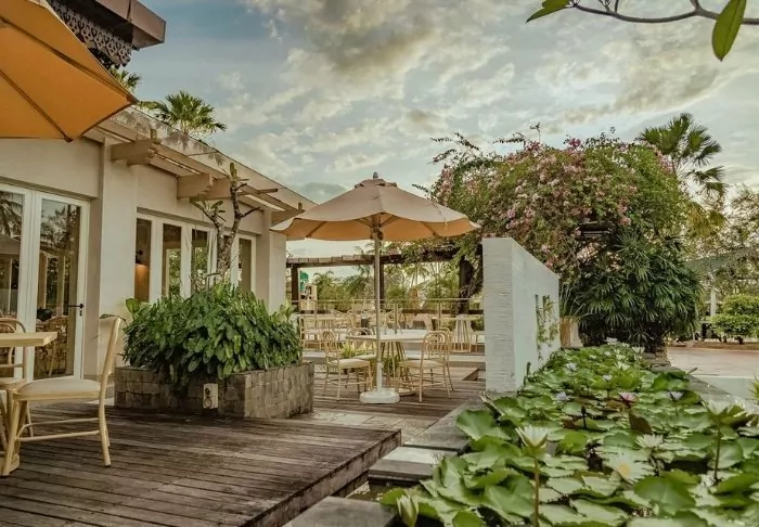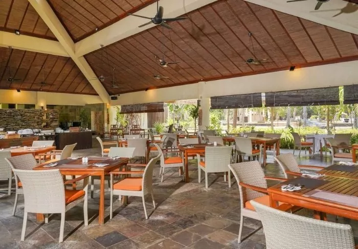 The resort’s 56 rooms are tastefully decorated, exuding classic charm with fine details and colonial-inspired wooden furniture, some adorned with Jim Thompson’s exquisite silk fabrics. The rooms offer breathtaking views through large French doors that also allow daylight to flood in. Each room is equipped with modern conveniences including Wi-Fi, a flat-screen TV, a minibar, tea and coffee-making facilities, and a fan. The bathrooms feature a bathtub and shower, along with a hairdryer, slippers, a bathrobe, and toiletries.