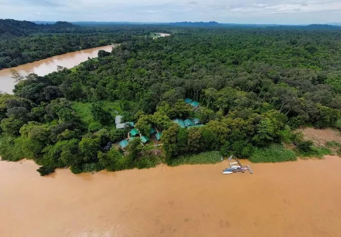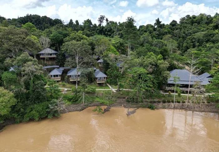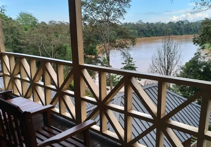 Perched on one bank of the Kinabatangan River, Hornbill Lodge boasts a prime spot overlooking the winding river and the surrounding lush rainforest.