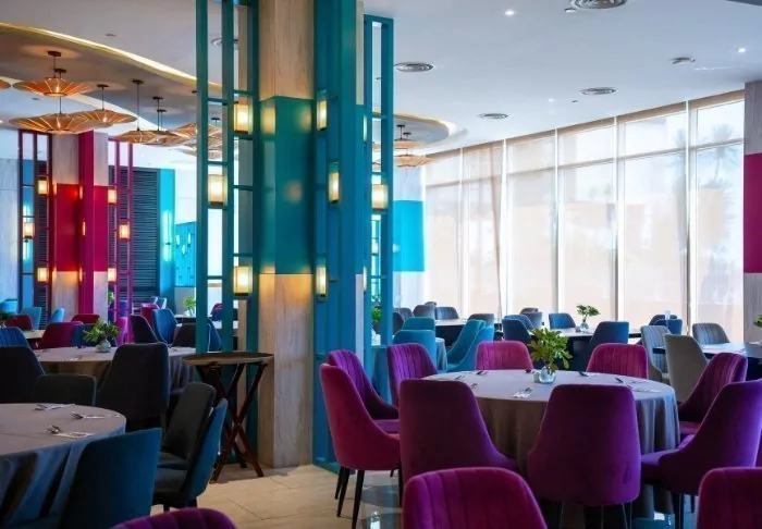 The resort’s numerous facilities include two swimming pools, one of which is set directly by the beach, a fully-equipped fitness centre, and a delightful spa area where you can indulge in a range of treatments inspired by local traditions. For younger guests, there’s a children’s pool, a water play area, and a playground, while the adventurous can try water sports like jet skiing or kayaking.