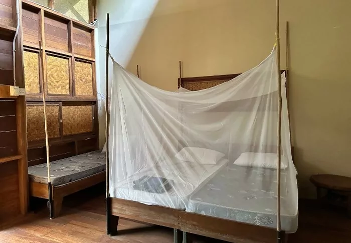 From the lodge’s open wooden deck facing the river, you can enjoy all meals, from morning coffee to evening cocktails. Local dishes are served in buffet fashion, offering a fine selection of chicken, fish, vegetables, and rice. During the day, coffee, tea, and drinking water are available in the communal area, where you can peacefully observe the river and the rich birdlife the area is known for.