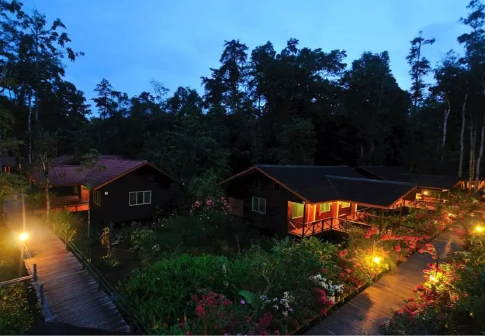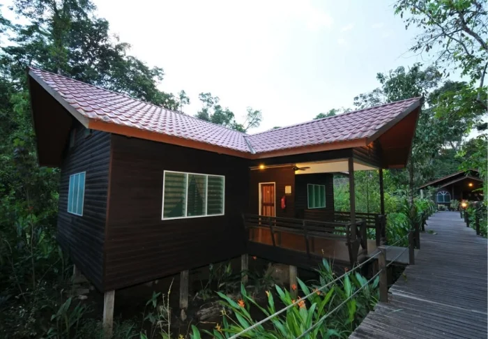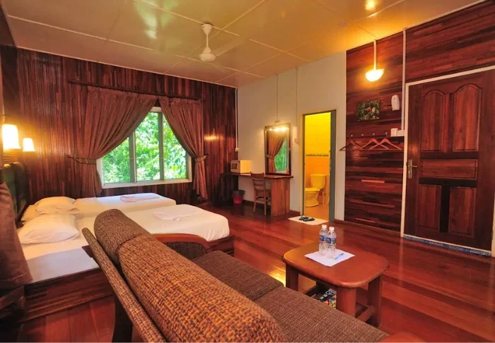 During your stay, you can look forward to residing in one of the lodge’s 40 beautifully appointed rooms. These spaces blend traditional Bornean aesthetics with modern comforts, and each room offers a stunning view of the lush jungle surroundings. All rooms are equipped with amenities such as air conditioning, a coffee and tea station, and an en-suite bathroom with a shower, hairdryer, and complimentary toiletries.