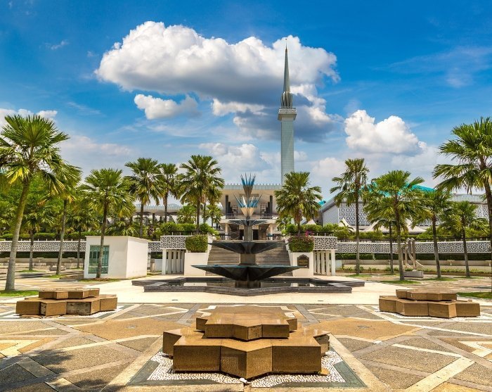 Finally, you’ll experience the national mosque, Masjid Negara, which is one of the country’s most significant religious buildings and a delightful example of modern Islamic architecture. The mosque, designed by architect Howard Ashley, is most noted for its blue, star-shaped dome representing the five pillars of Islam. The mosque is surrounded by beautifully landscaped gardens with reflecting pools and fountains, adding to a peaceful atmosphere.