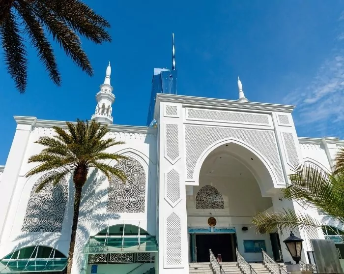 Finally, you’ll visit the National Mosque, the Masjid Negara, one of the country’s most significant religious buildings and an example of modern Islamic architecture. Designed by architect Howard Ashley, its most distinctive feature is the star-shaped blue concrete dome, symbolising the five pillars of Islam. The mosque is surrounded by beautifully landscaped gardens with reflective pools and fountains, contributing to a peaceful atmosphere.
