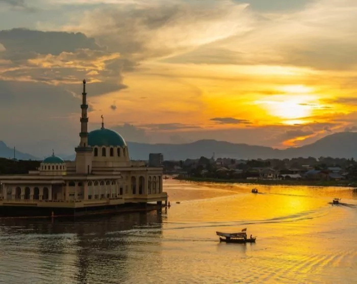 Your guide will first lead you through the lively streets of Chinatown, where you can be tempted by the inviting aromas from a wide array of charming eateries and visit the colourful Tua Pek Kong temple. One of the city’s highlights awaits at the golden-domed city mosque, a symbol of Kuching’s religious diversity. Next, head to Little India, which offers a sensory experience with its colourful houses brimming with textile shops and spice dealers.