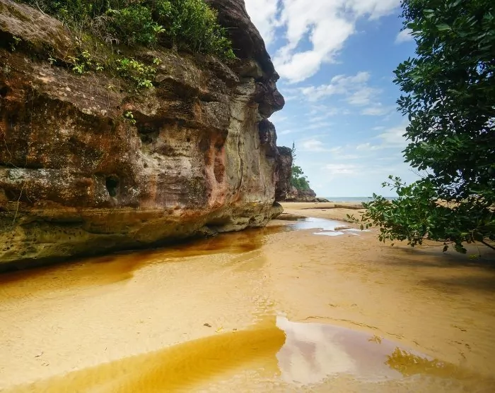 Upon arrival, you’ll embark on an extensive network of trails through the rainforest. Here, you’ll explore the park’s diverse vegetation, ranging from mangroves to tropical swamp, cliff, and beach ecosystems. On your path, which winds up and down, keep your eyes peeled for the unique wildlife of the National Park, including silver leaf monkeys, long-tailed macaques, bearded pigs, monitor lizards, snakes, and a vast array of bird species. In Bako’s rainforest, you might also be fortunate enough to encounter Borneo’s red-pelted proboscis monkeys, proudly displaying their noses – the larger the nose, the more attractive a proboscis monkey male is considered among the females.