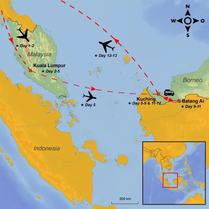 Your journey begins in the charming capital of Malaysia, Kuala Lumpur, and continues into the Malaysian state of Sarawak on Borneo, promising unforgettable memories and a deeper cultural understanding of this fascinating part of the world.