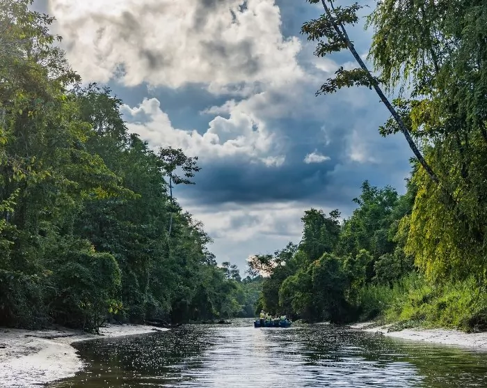 As you board the small boat, you can sit back and soak in the peaceful ambiance of the rainforest while cruising along at sunrise. The landscape around you feels like something out of a fairy tale, with scenes that can take anyone’s breath away. The river’s winding course meanders through both open and dense rainforest, where the roaring of monkeys and singing of birds create a unique soundscape.