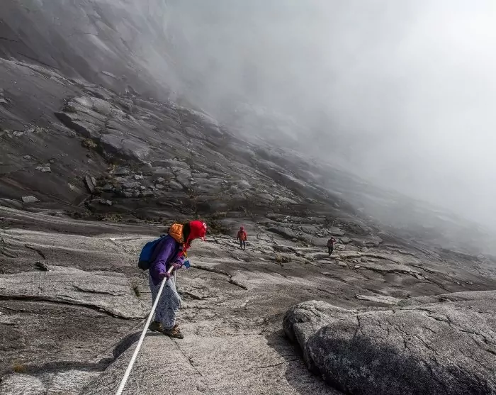 You will wake up in the dark of night to continue your ascent towards the summit of Mt. Kinabalu. Equipped with a headlamp and warm clothing, you venture out under the night sky, hoping for glimpses of twinkling stars. The air is cool and clear, with the silence mostly broken by your own footsteps and breathing.