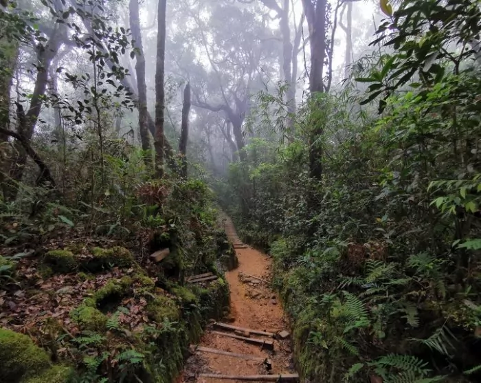 Leaving Timpohon Gate, you’ll enter the lush rainforest terrain, accompanied by the sounds of cicadas and birds. The trail winds through dense bushes and tall trees, with the humid air gradually replaced by cooler temperatures as you ascend the mountain.