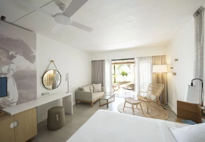 There are 261 rooms, all of which have a view of either the sea or the large tropical gardens surrounding the hotel. All the rooms have a private balcony or terrace. They also have air conditioning, a TV and a minibar.
