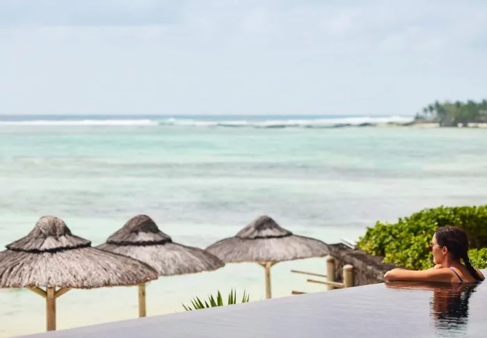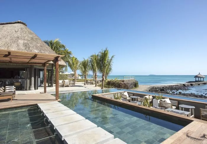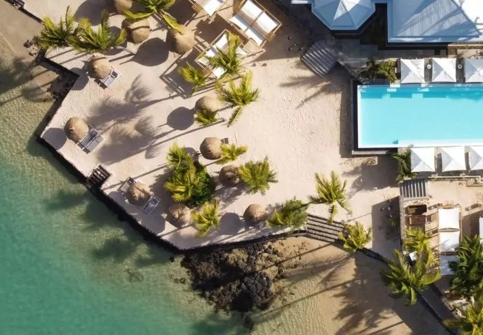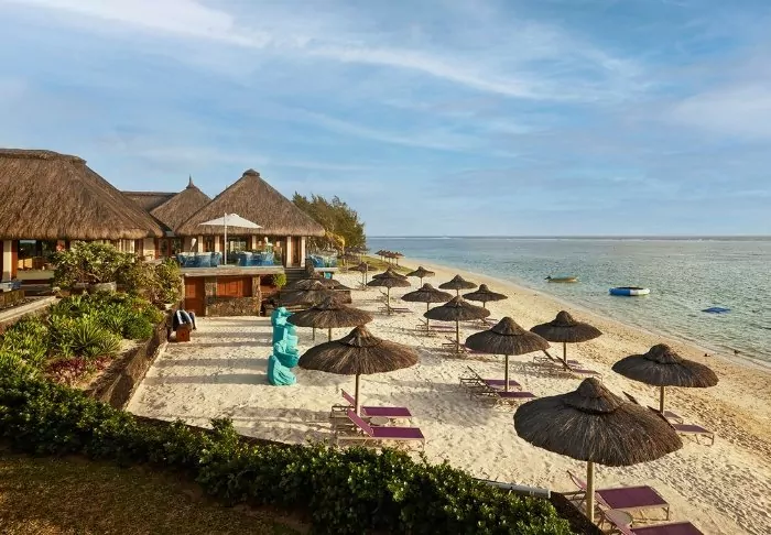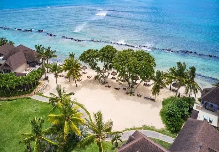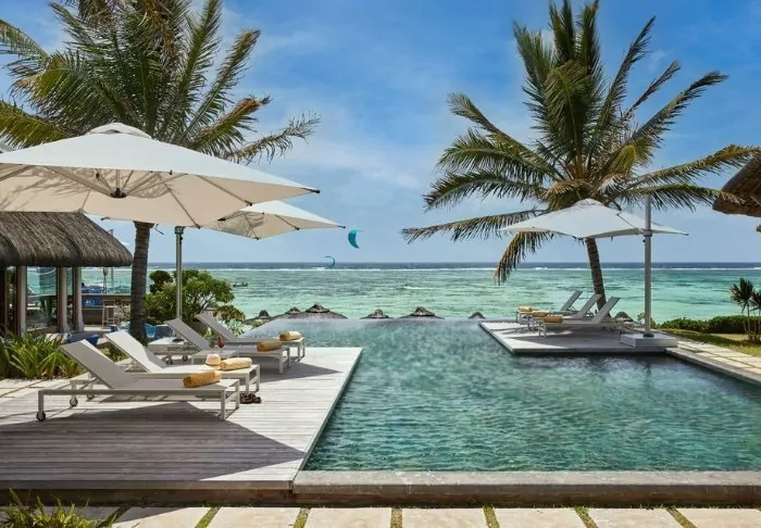 The hotel is located on one of Mauritius’s most beautiful beaches, Palmar Beach. Think chalk-white sand and turquoise sea.