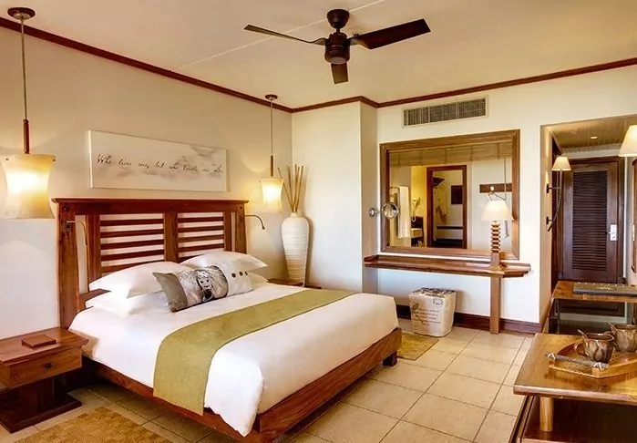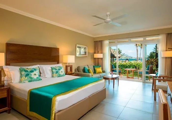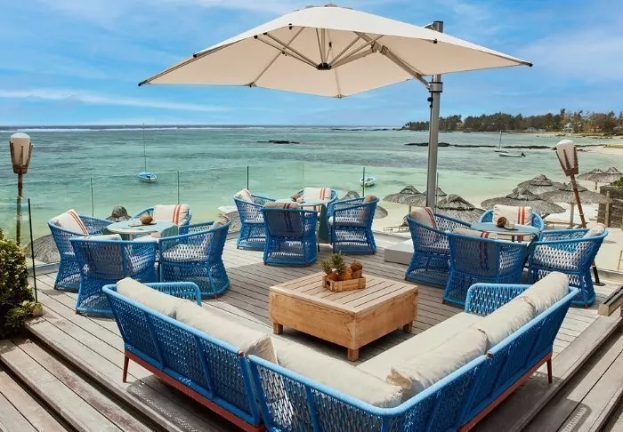 The rooms are large, spacious and decorated in Mauritian and Asian style with either a balcony or a patio. All of the rooms look out onto the sea and all have air conditioning, a minibar, tea and coffee making facilities, a flat-screen TV – and everything else you would expect from a five-star resort. There is free Wi-Fi throughout the hotel.